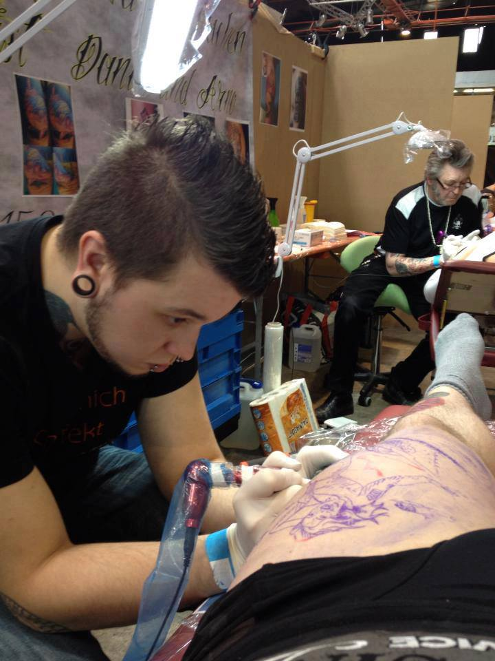 Arno hat tätowiert und gepierct, Daniel tätowiert und gelasert, und Margit hat die Terminabwicklung übernommen.